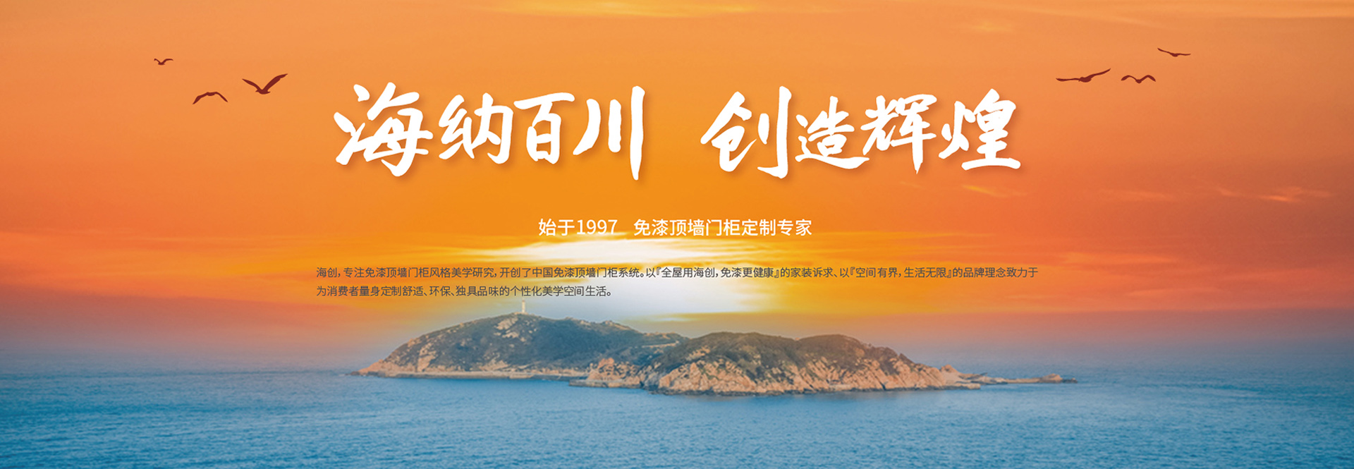 海創(chuàng),專注免漆頂墻門柜風(fēng)格美學(xué)研究,開創(chuàng)了中國(guó)免漆頂墻門柜系統(tǒng)。以『全屋用海創(chuàng),免漆更健康』的家裝訴求、以『空間有界,生活無限』的品牌理念致力于為消費(fèi)者量身定制舒適、環(huán)保、獨(dú)具品味的個(gè)性化美學(xué)空間生活。